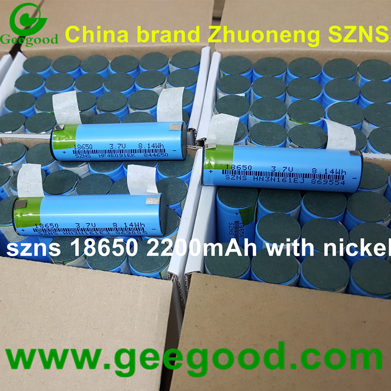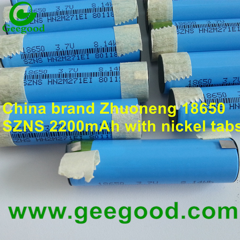 China brand Zhuoneng SZNS 18650 2200mAh 3.7V 8.14Wh battery with nickel strip tabs