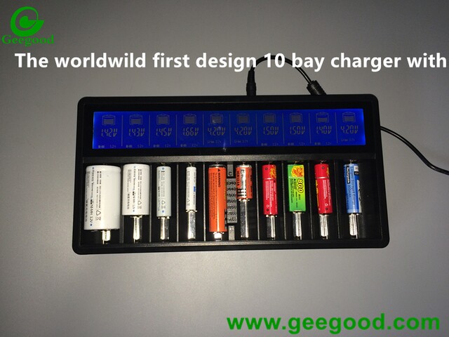 The worldwide first design 10 bay charger with LCD screen