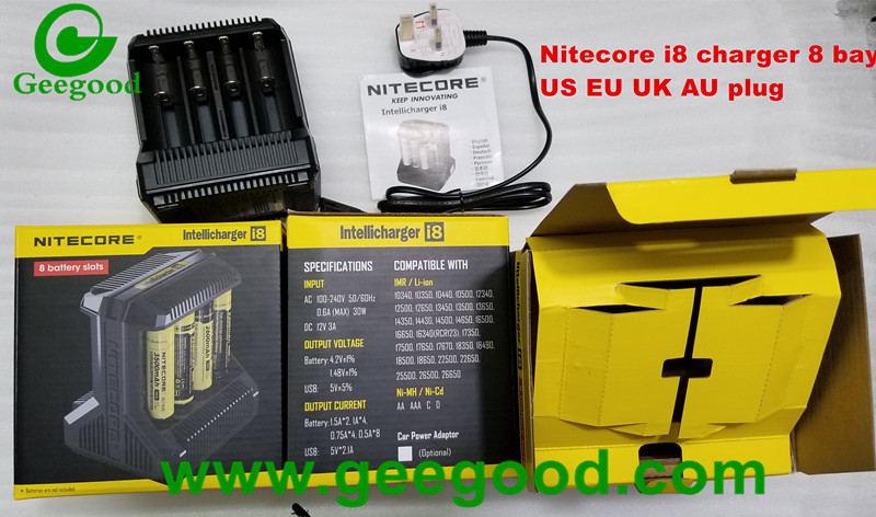 - Nitecore charger NEW i2 i4 i8 with LCD display US EU UK AU plug