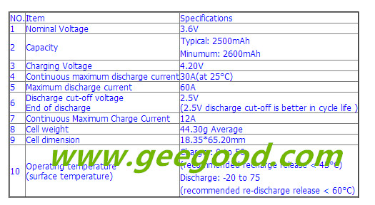 More Specs data sheet MURATA 18650 VTC5, pls feel free to contact us!