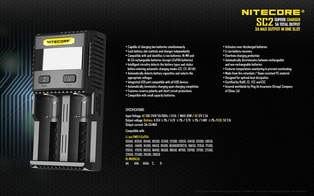 Multifunctional batteries charger Nitecore SC2 fast charger